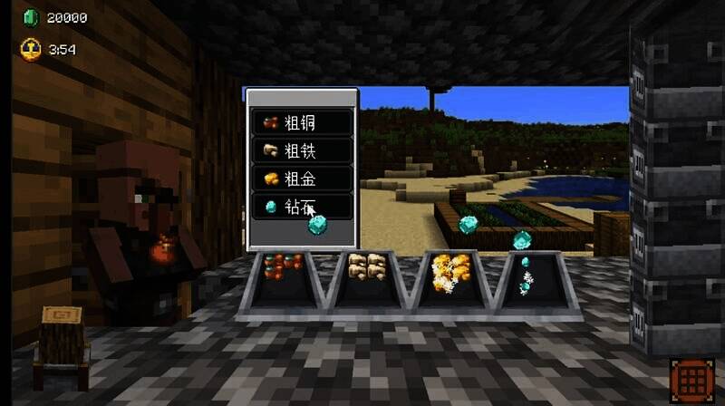3. 加入材料合成环节,制作物品后等待村民进店获取所需物品。