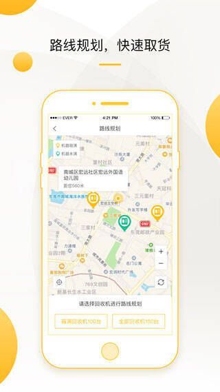 1、【路线规划】可导航至装满物品的回收机,快速接收商品。