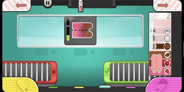 2、玩家既能在传统冰棍店环境中操作,也能随着游戏推进解锁风格各异的场景。