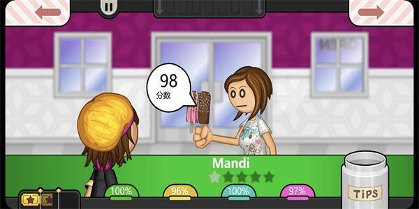 1、老爹冰棒店极为注重顾客互动,玩家需凭借优质服务与美味冰棍赢得顾客青睐。
