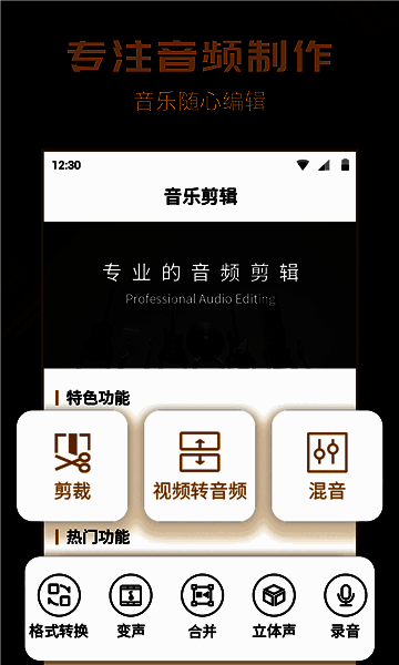 视频到音频:支持音频提取,选择视频后一键提取音频,可从流行的短视频中提取音乐。