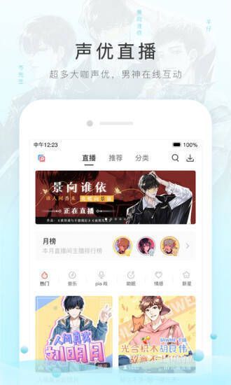 作为弹幕音频客户端,其声音源自二次元。声音搭配弹幕般的评论,讨论氛围热烈,充满趣味与内涵。音库极为全面,上至大师配音,下至歌曲、动画、游戏、电影中的经典台词,一应俱全。很适合在上下班路上听广播剧和翻唱歌曲,晚上睡觉前听动漫广播和催眠歌曲。