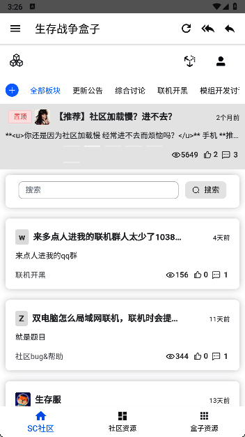 scbox生存战争盒子是e工作室打造的社区资源论坛软件,专为MC生存战争游戏玩家服务。玩家能在此分享游戏经验、查找攻略技巧、寻找团队伙伴,还可获取丰富游戏资源,如优质攻略、视频教程、游戏MOD等,轻松掌握最新游戏更新与扩展内容,让游戏体验更丰富。