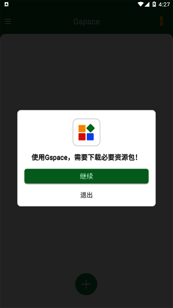 3、根据提示,下载安装必要的资源包,点击“继续”,Gspace会自动下载安装好GMS所需文件。