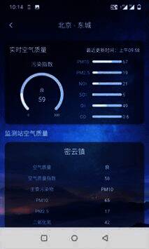2. 提供实时空气质量监测,含PM2.5、PM10、AQI等指数,了解城市空气质量。
