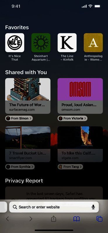 3. 向下滑动可自动隐藏工具栏,获得Safari风格的全屏浏览体验。