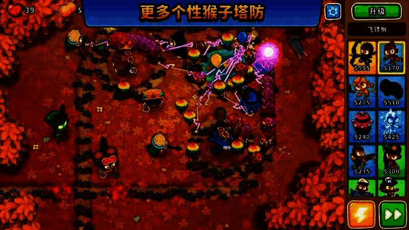 气球怪物各具能力和特点,玩家需有效利用资源,针对不同敌人制定合适的防御策略,这也是游戏的核心所在。气球塔防6的主要玩法是建造和升级防御塔,以阻止气球怪物前进。