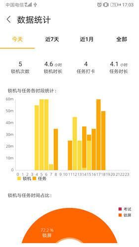 锁专家可定制日常任务并打卡;自动跟踪用户手机使用情况,以图表呈现;自动记录每日锁定时间并标记在日历中;协助用户规划手机使用时间,减少不必要使用。