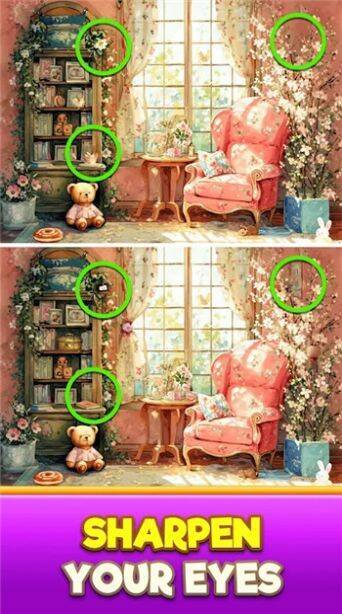 差异梦想之家游戏(Differences - Dreamy Home)是一款极富乐趣与挑战的休闲找茬游戏。玩家将踏入一个满是细节与色彩的世界,尽情享受寻找隐藏差异的趣味。