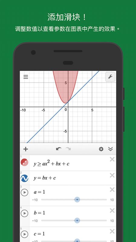 4、使用简单又强大的绘图工具,能实时绘制从直线、抛物线到回归和导数的各种方程。