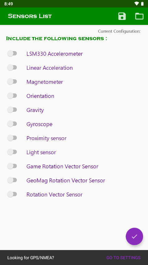 1. 用户可按需自定义手机上的传感器列表,实现数据流。