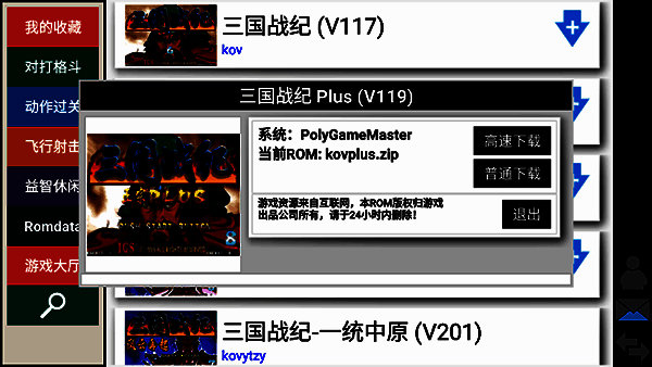 1. 以中文显示游戏名称,还会提醒rom游戏包文件名,方便玩家下载游戏。
