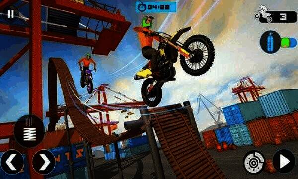 - 通过触摸屏操作,玩家可控制自行车的加速、减速、跳跃和旋转,实现精准特技表演。