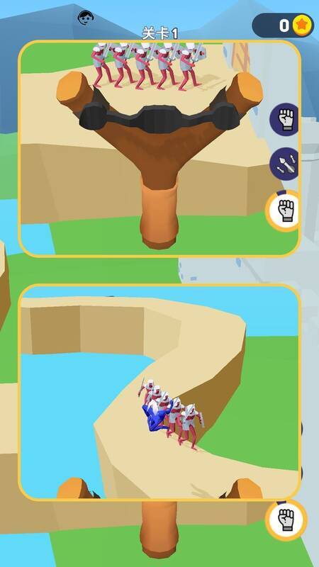 1、用金币升级弹弓,增加发射箭和士兵数量,解锁新士兵。