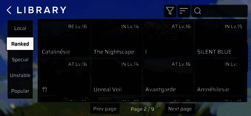 点击右上角“i”图标,进入谱面信息界面,在这里,你可以看到该谱面的歌曲名称、曲师、谱师、难度、简介、评分、分类、谱面ID。