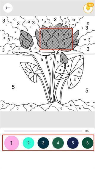 2、进入绘制界面,在下方点击与图片人物对应的数字颜色即可开始填色;