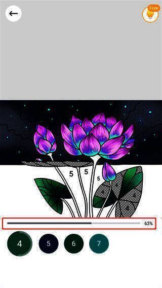 3、数字与插画中间有一个进度条,玩家可依据进度条进行填色;