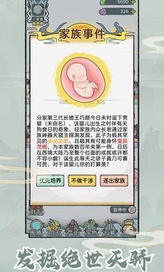 - 开放式剧情与随机事件:游戏充满随机性,如偶遇强者、成员争斗等事件影响家族命运。