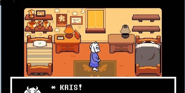 6、克里斯到学校时,老师艾菲斯(Alphys)已布置了小组作业,要求学生两人一组。克里斯到的时候,同学们都已有了同伴。玩家需要找到第一排最左边的同学,按“乙”键进行对话;之后又来了一个人。