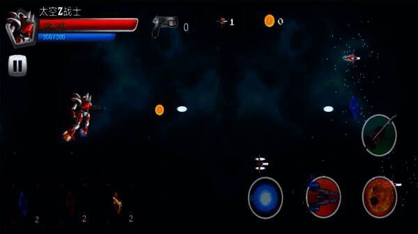 1. 玩家用虚拟摇杆控制战机飞行方向,触摸屏幕射击,消灭敌人并躲避攻击。