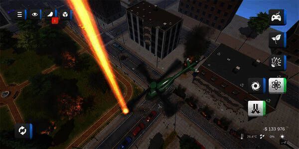 在游戏里,玩家可操控地震、龙卷风、核武器、外星飞船等多种史诗级灾难对城市展开破坏,能自由挑选不同灾难,肆意释放内心负面情绪。玩家还能自主设置城市天气(如晴天、雨天、雪天等)和景色,掌控城市氛围。