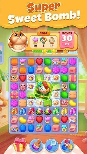 4、游戏提供爆炸糖果、彩虹糖、魔法宠物等多种道具,助玩家轻松应对困难关卡。