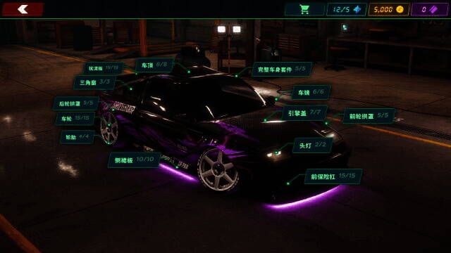 2、游戏开始前能自定义车辆的颜色与组件。