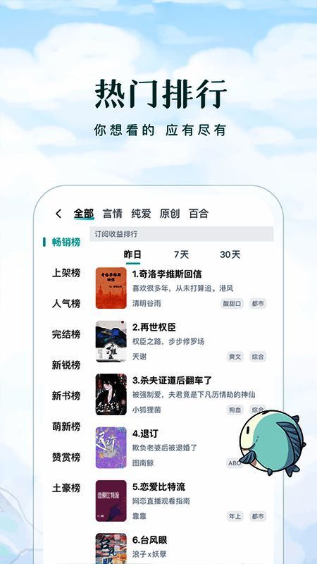 3. 热门排行:展示网络上点击和搜索量高、广受网民赞誉的热门小说,精心挑选,精彩绝伦。