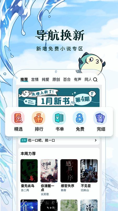 2. 类型多样:情感、穿越、幻想、都市、青春、校园、CEO、BL、同人、官场、励志、武术、科幻、历史、军事等小说类型一应俱全。