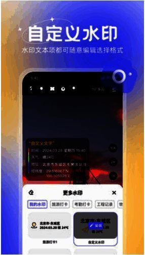 无双水印相机不仅为用户带来强大的拍照功能,还配备了十分实用的编辑工具。用户可根据自身需求自由调整水印的位置、大小和透明度等属性,满足对水印的个性化需求,轻松定制照片水印,带来丰富的使用体验。