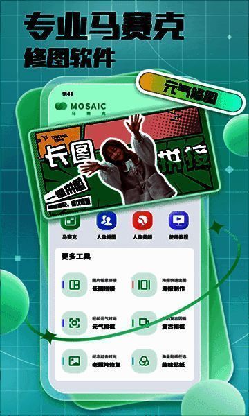 2、内置丰富多样的背景、贴纸和滤镜材料,可按需选择应用,增强照片创意。