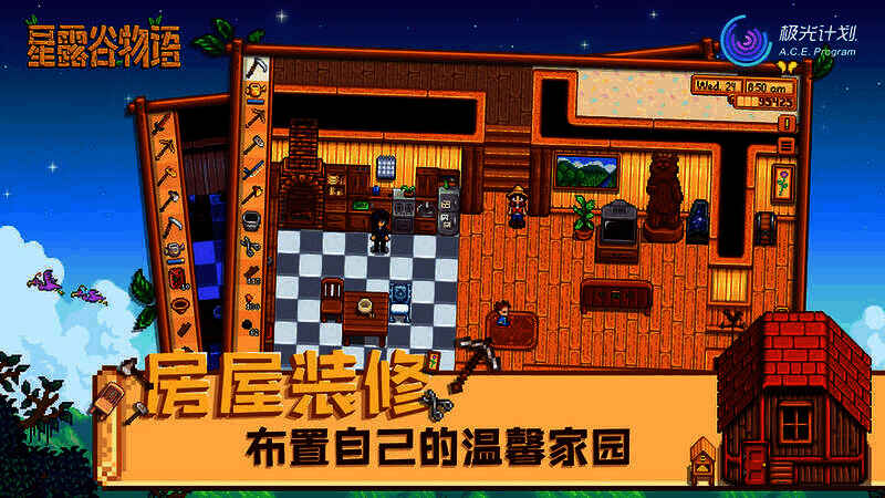《星露谷物语2025手机版》是由ConcernedApe开发并发行的热门像素农场经营手游。游戏采用像素艺术视觉风格,带玩家走进活力与挑战并存的农场经营世界。玩家作为逃离城市的农民,来到城楼谷开启农场生活,可按自身计划和资源选种作物。