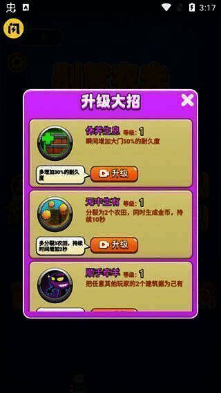 别惹农夫是一款融合了猛鬼宿舍和植物大战僵尸玩法的策略塔防手游,以田园画风呈现,旨在为玩家带来舒适体验。玩家进入游戏后可扮演农夫,通过种植植物对抗僵尸;也能换阵营扮演僵尸入侵农场。游戏设有简单、难、超难三种难度,难度越高僵尸越多。