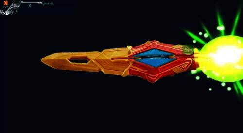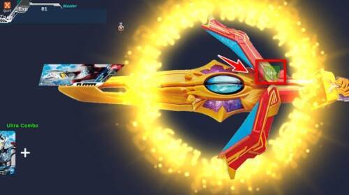 刷卡读取特利迦空中型的奥特次元卡牌之后,剑身上聚集大量的兰帕尔特能量,以自身为轴心高速旋转并对敌人进行猛烈的连环斩击!