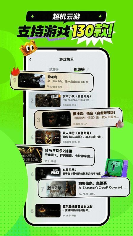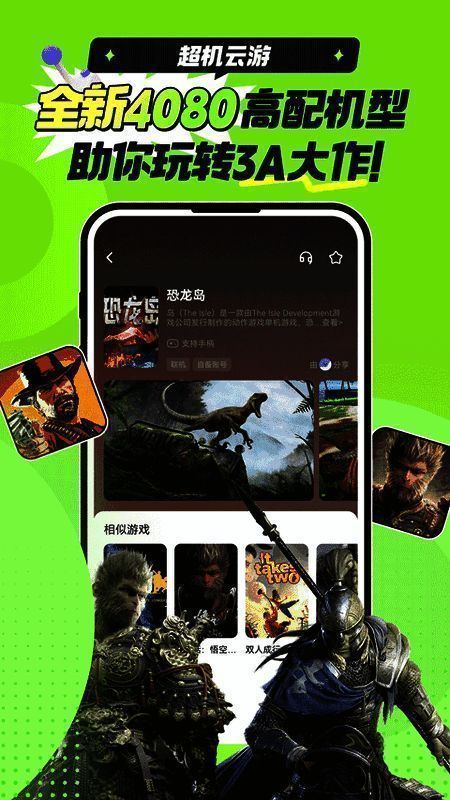 超机云游是一款性能卓越、游戏资源丰富且稳定流畅的手机云游戏软件。它拥有海量云游戏资源,像绝地求生、黑神话悟空、全面战争模拟器、奥特曼进化格斗、地平线5等应有尽有,并且全部免费、无广告。用户只需轻点一下,就能一键在线畅玩,充分满足超自由的游戏体验。软件配备大量高性能云主机,均为4080配置,无需担心游戏运行问题。