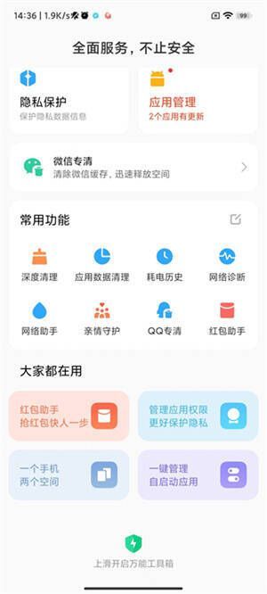 1、零广告纯体验:无开屏广告和促销弹窗,核心功能免费开放,支付点仅为“个性化安全皮肤”等非必要装饰。