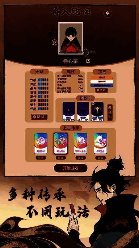 3. 可选择天赋,不同天赋赋予不同属性。