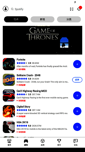 2. 有各种高质量的游戏和软件应用资源,易于发现。