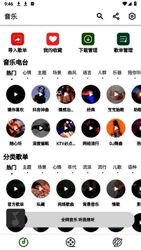 乐影漫实现一站式娱乐,将音乐、电影和漫画资源整合,方便用户切换欣赏。每日同步更新电视剧和音乐资源,完全免费无广告干扰。内置强大搜索引擎,方便用户查找资源。