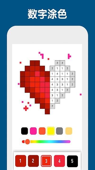 玩家需按像素格子上的数字选色填涂,完成图案创作。游戏图案难度从简单几何形状到复杂艺术作品逐步递增,考验玩家观察力与耐心。每个关卡有时间限制,增添挑战性与紧迫感。玩家可通过点击或滑动灵活涂色,提高完成图案的效率与准确性。