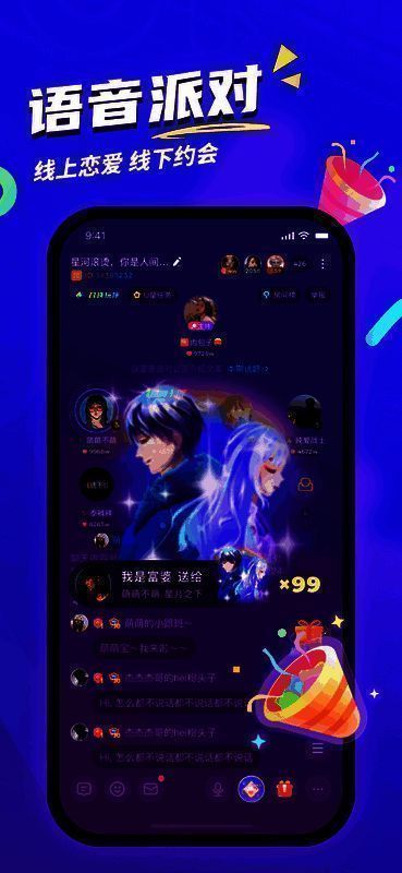 2、提供多人语音聊天功能,用户可加入不同语音房间,和朋友们畅快聊天。