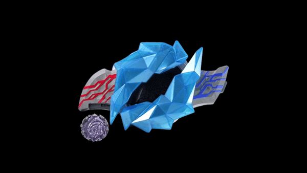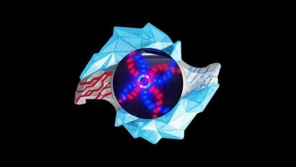 5、变身过程中,中间的水晶会展开露出显示屏,出现红色和蓝色圆圈旋转,不同的晶石特效各不相同。