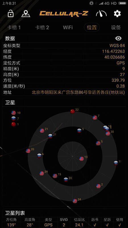 3. 掌握当前位置信息、GPS卫星地图和NMEA日志。