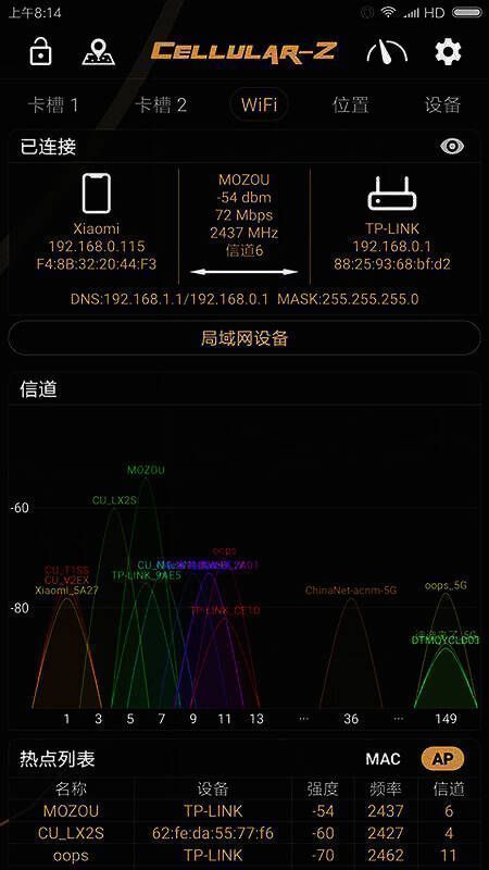 2. 获取WIFI信息(连接信息、附近WIFI列表、2.5和5GHz WIFI频道)。