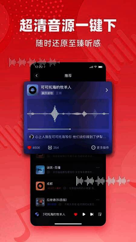 该软件运用先进智能算法和专业人工推荐,为用户精选适配音乐,让聆听成为独特享受,便于用户发现、欣赏和分享喜爱的音乐。