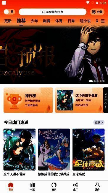 4. 在线漫画更新与全网同步,订阅喜爱漫画后可即时收到更新推送。
