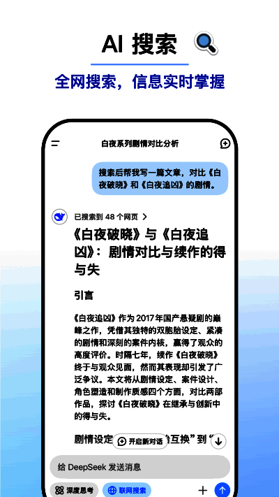 3、高效搜索算法:借助先进的深度学习和自然语言处理技术,能在海量数据中快速精准定位用户所需信息。