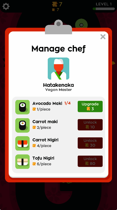 4. 挑战与成就系统:设有挑战和成就系统,完成任务、达成目标可解锁新寿司菜谱、店铺装修等。