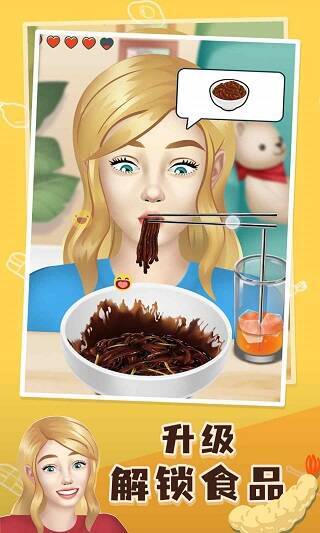 当你看到主播大快朵颐时,自己也会心生羡慕,若受胃口所限,不妨试试这款游戏。它以吃播为主题,采用闯关制模式,不同关卡有不同美食。