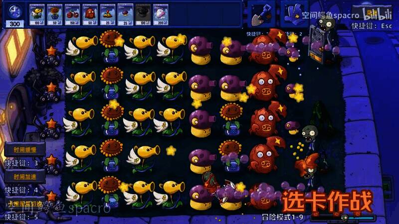 1. 玩家在场景格子中放置不同植物,以抵挡前方奖励。